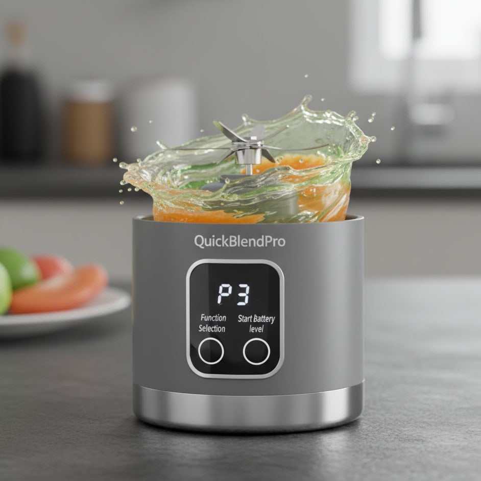 This image captures the blender’s high-torque motor in action as ingredients burst into a smooth blend. The upper-splash visual emphasizes speed and performance, making the juicer ideal for smoothies, shakes, and nutrient-packed drinks. The digital interface adds modern functionality for precise blending control.